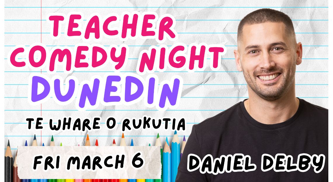 Get ready to experience the comedic sensation that has been sweeping Australia and into it's neighbour, New Zealand! Award-winning comedian Daniel Delby brings his sell out hit show, Teacher Comedy Night, to the beloved Te Whare o Rukutia Dunedin Central, as it's 2nd show of the tour run!