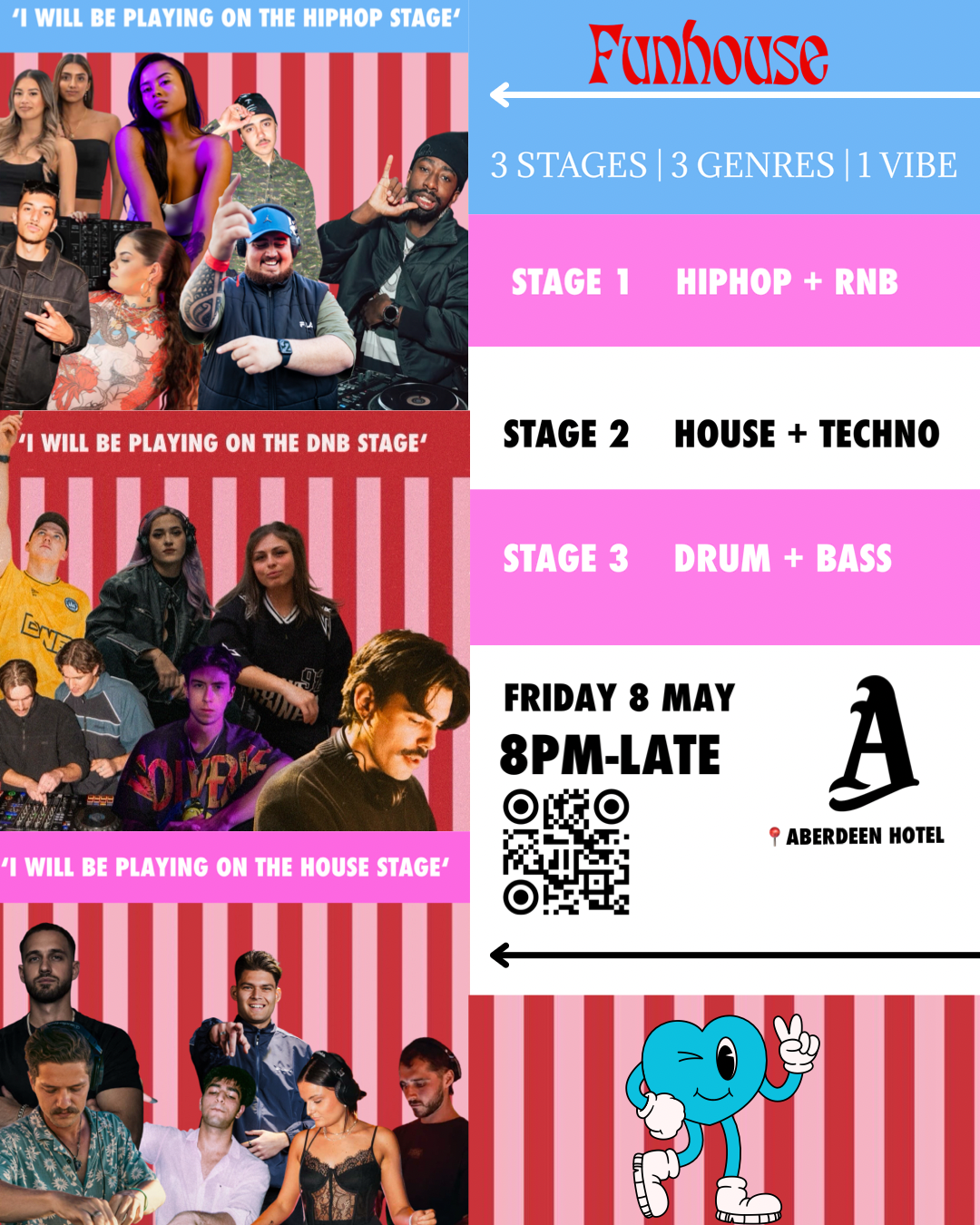 On Friday 8 May from 8PM till late, a brand new nightlife concept lands in the city. FUNHOUSE is Perth’s first multi-genre club event, bringing together the sounds you love under one roof.